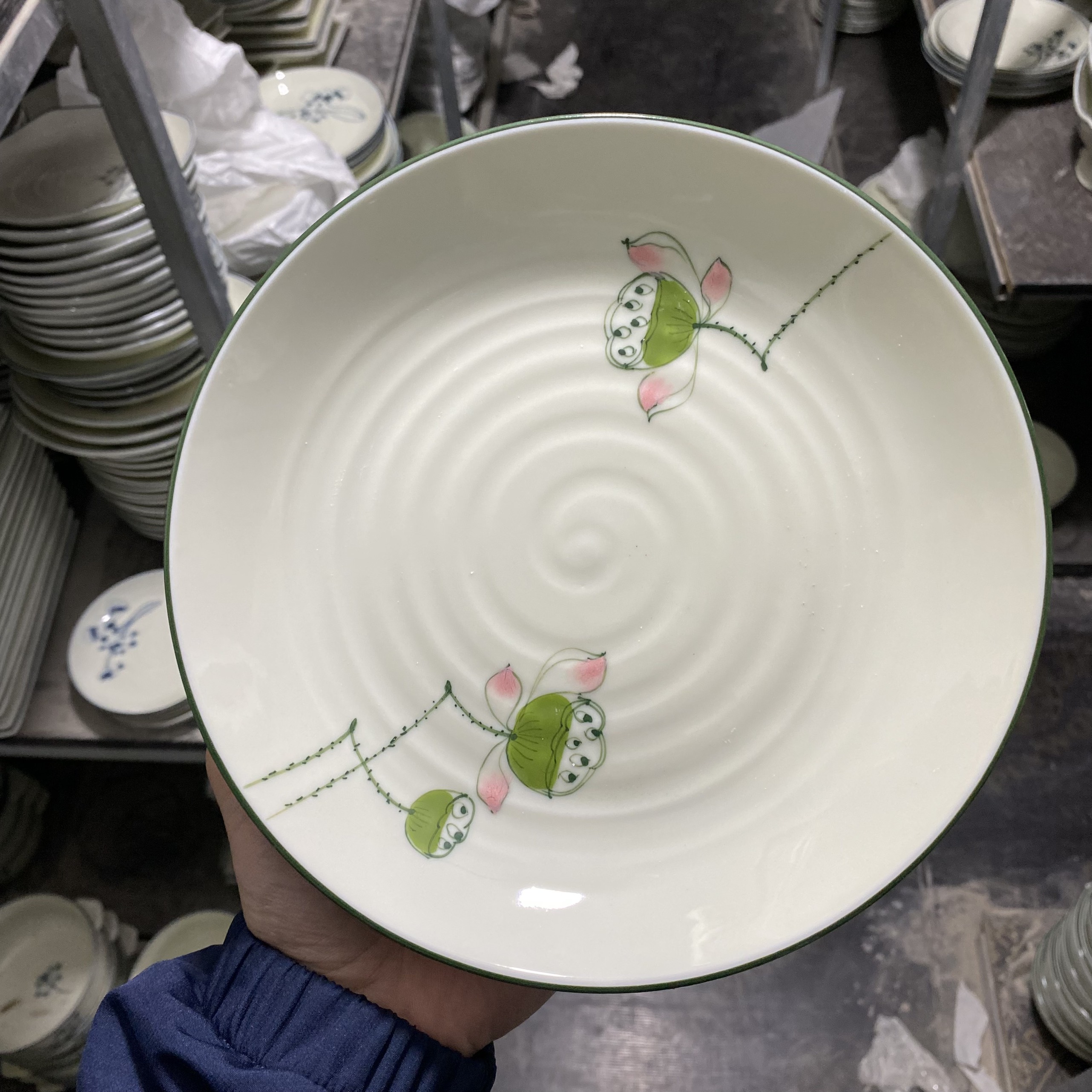 TÊN SẢN PHẨM: Đĩa tròn men kem vẽ đài sen