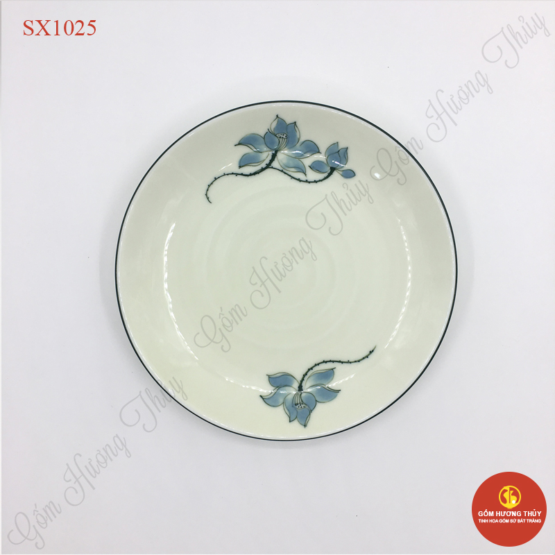 TÊN SẢN PHẨM: Đĩa tròn men kem vẽ sen xanh