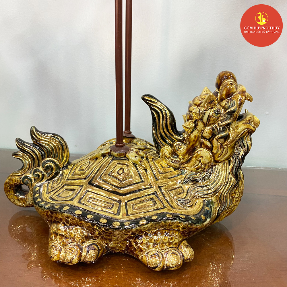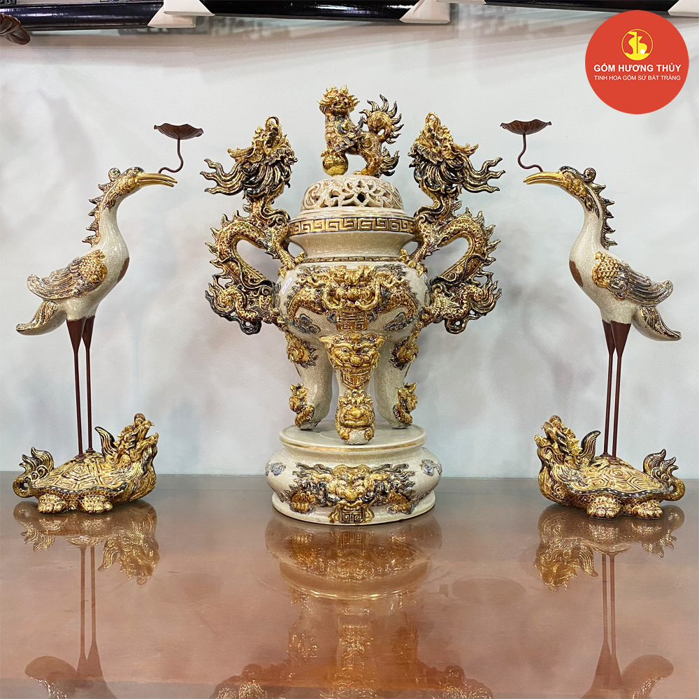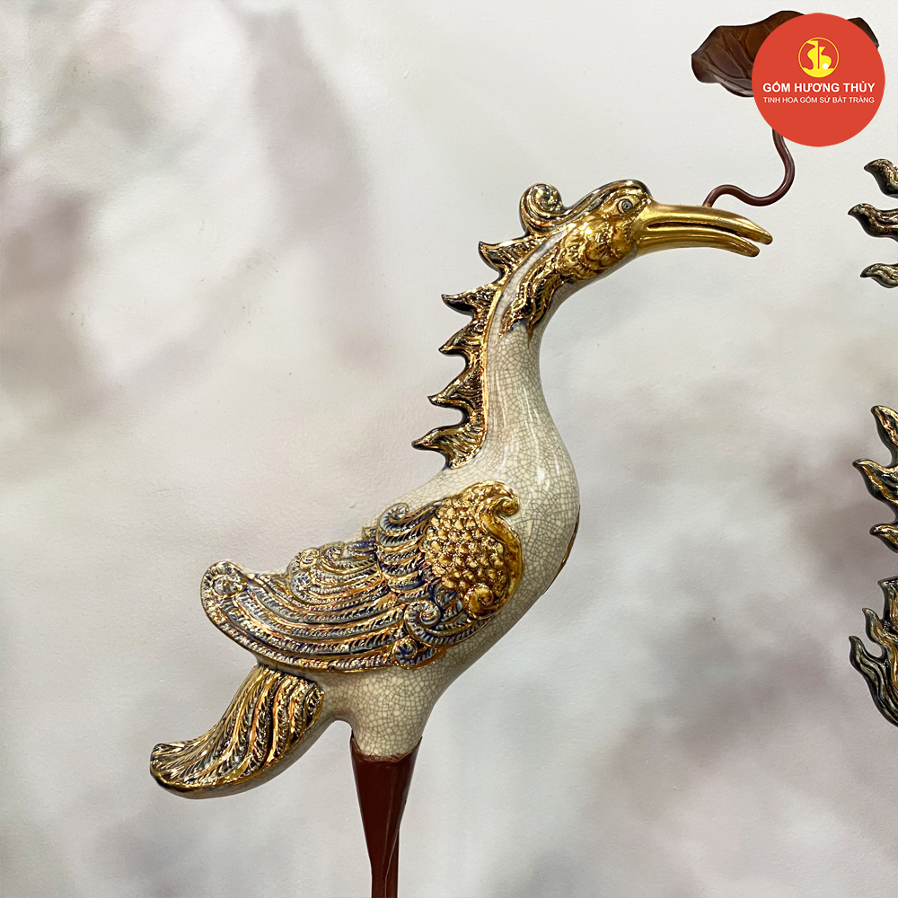 TÊN SẢN PHẨM: Đỉnh hạc S3 men rạn đắp nổi Vẽ vàng kim