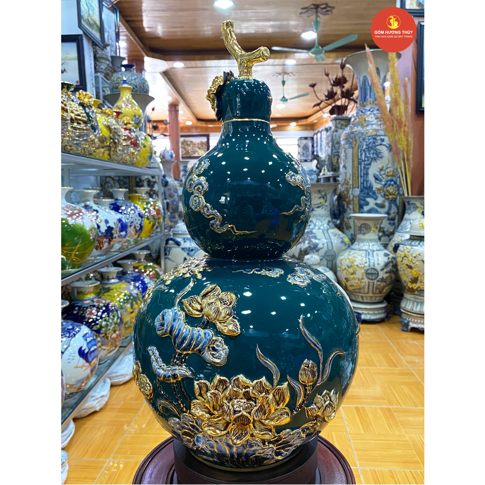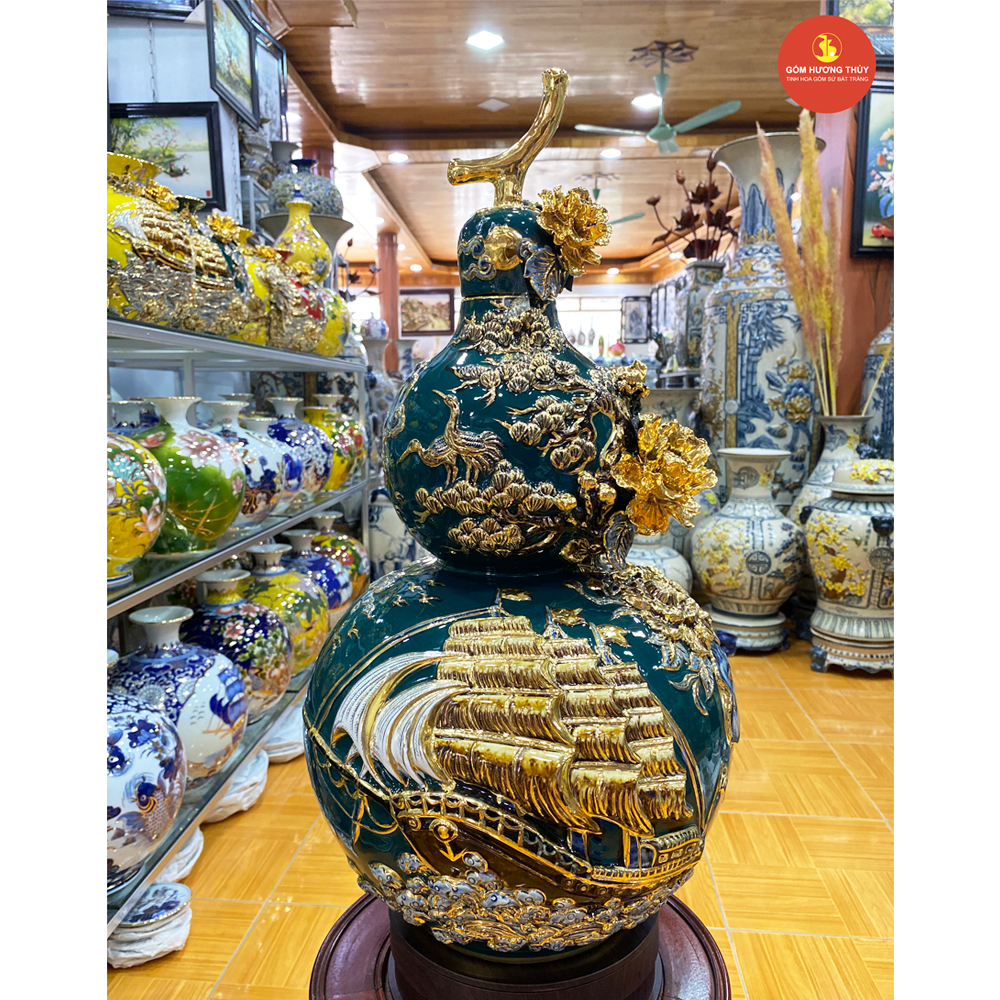TÊN SẢN PHẨM: Hồ Lô đắp nổi Thuận Buồm Vẽ Vàng H50 nền xanh lục