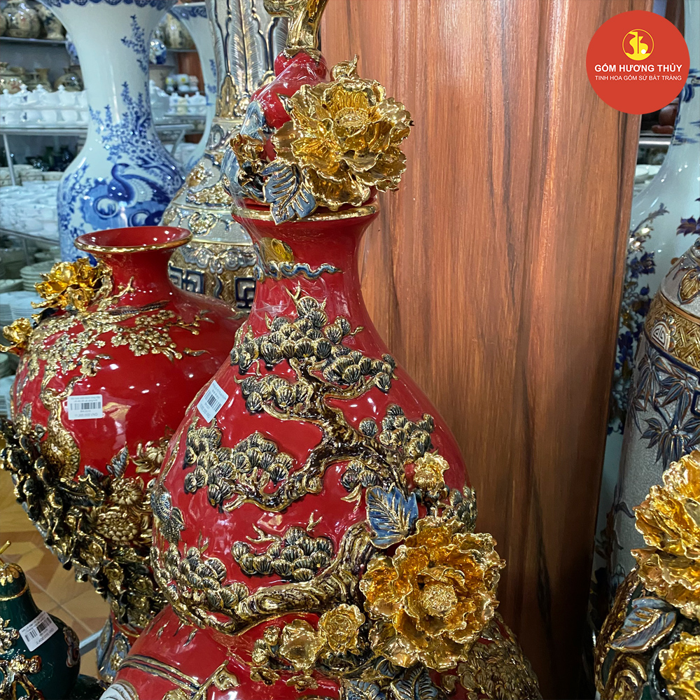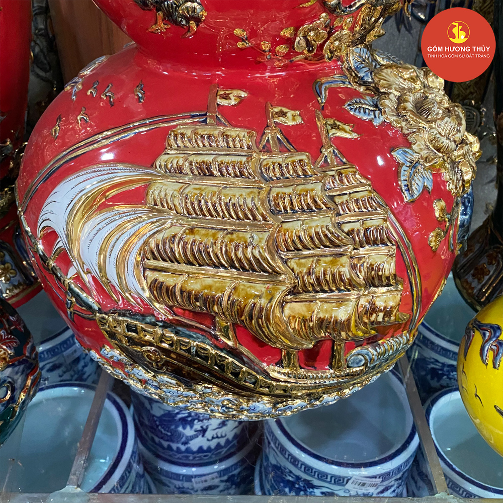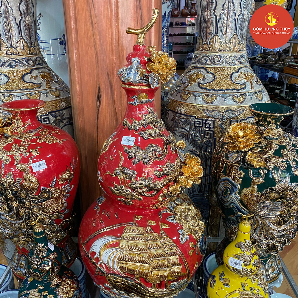 TÊN SẢN PHẨM: Hồ lô đắp nổi H75 Thuận buồm nền đỏ Vẽ vàng