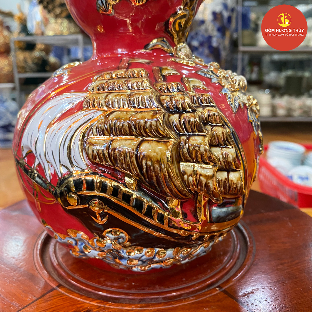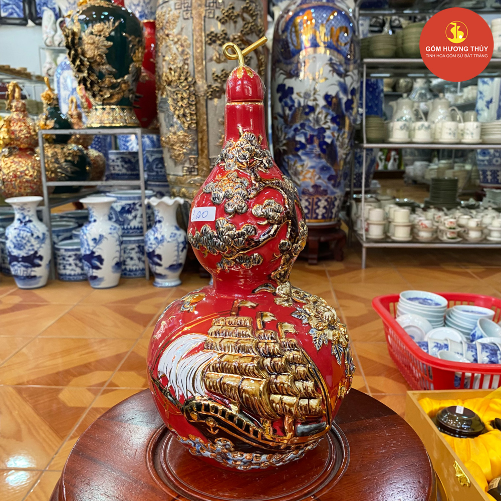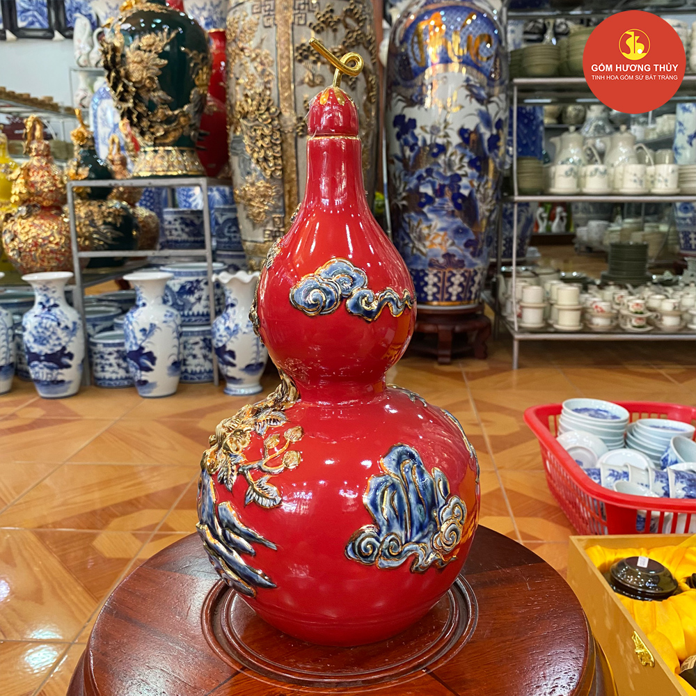 TÊN SẢN PHẨM: Hồ Lô đắp nổi Bát mã Vẽ Vàng H30 nền xanh lục