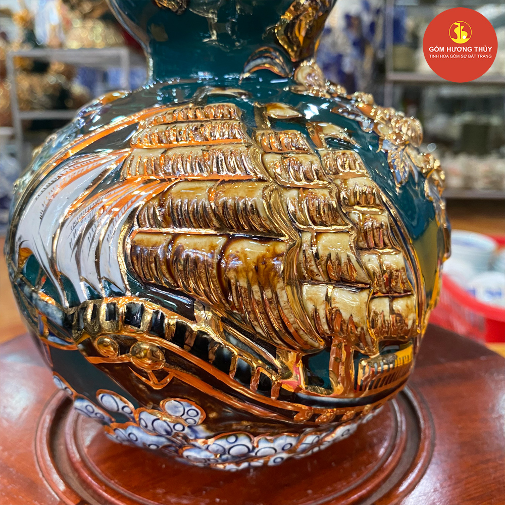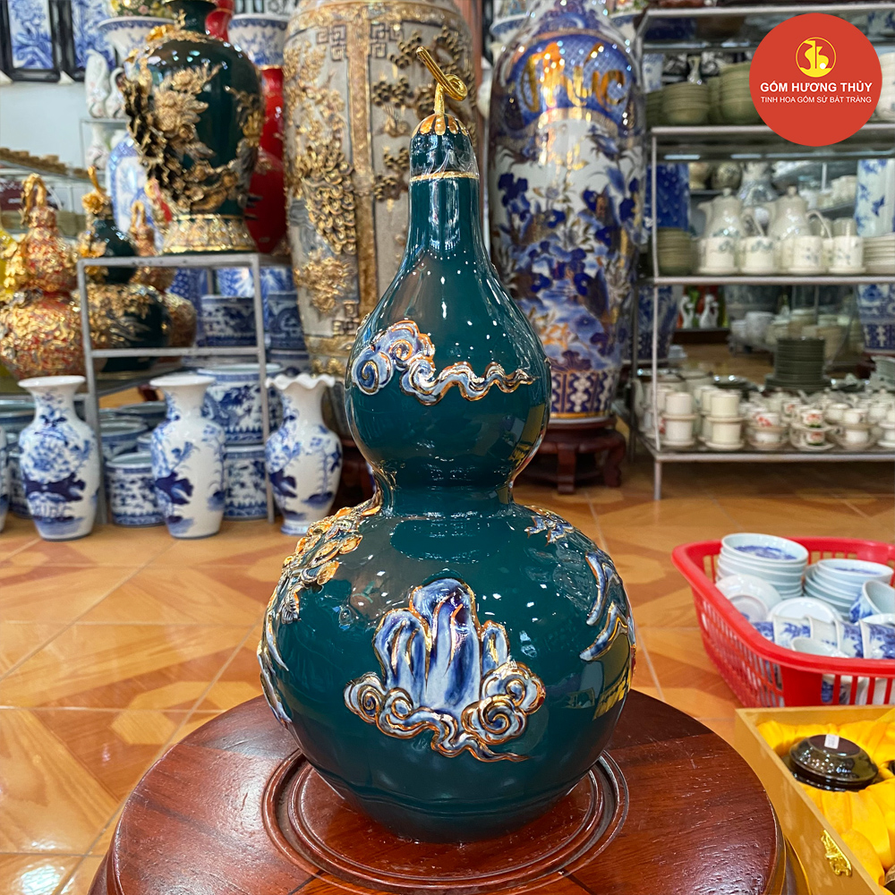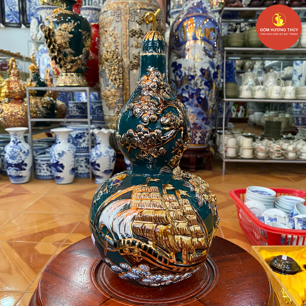 TÊN SẢN PHẨM: Hồ Lô đắp nổi Thuận buồm Vẽ Vàng H30 nền xanh lục