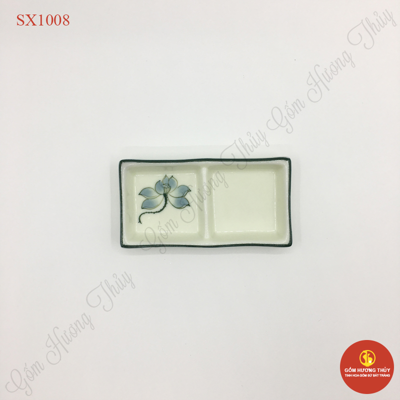 TÊN SẢN PHẨM: Khay gia vị 2 ngăn men kem vẽ sen xanh