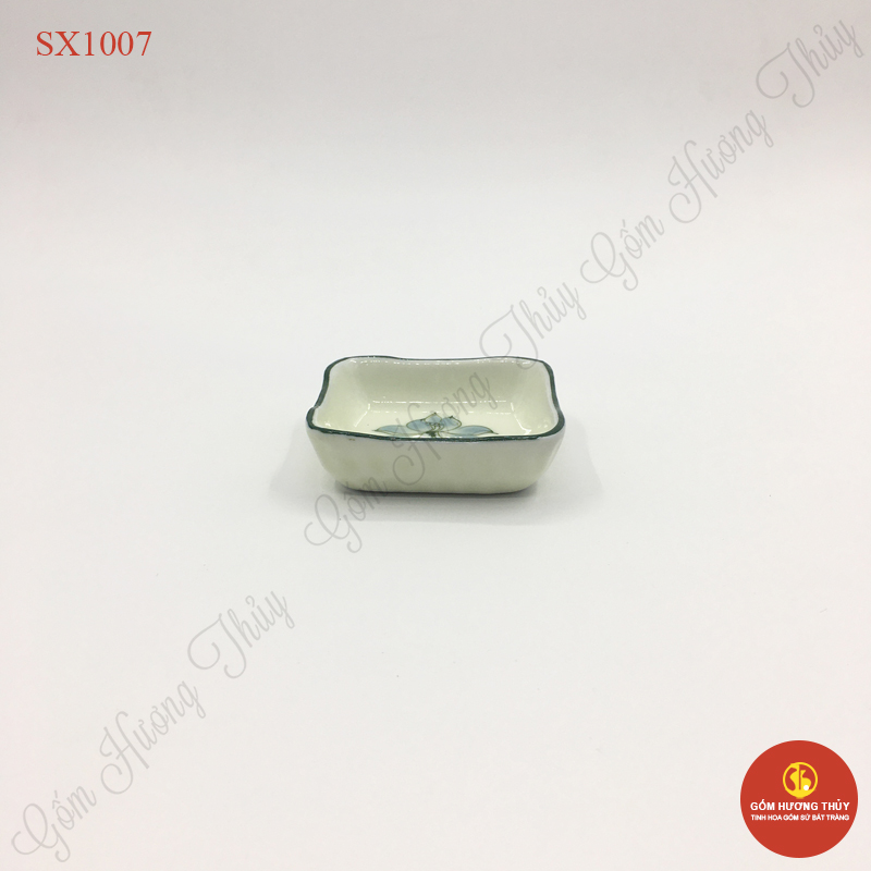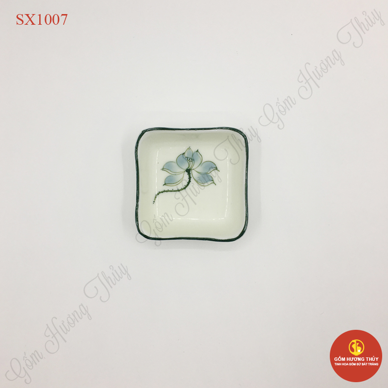 TÊN SẢN PHẨM: Khay gia vị vuông men kem vẽ sen xanh