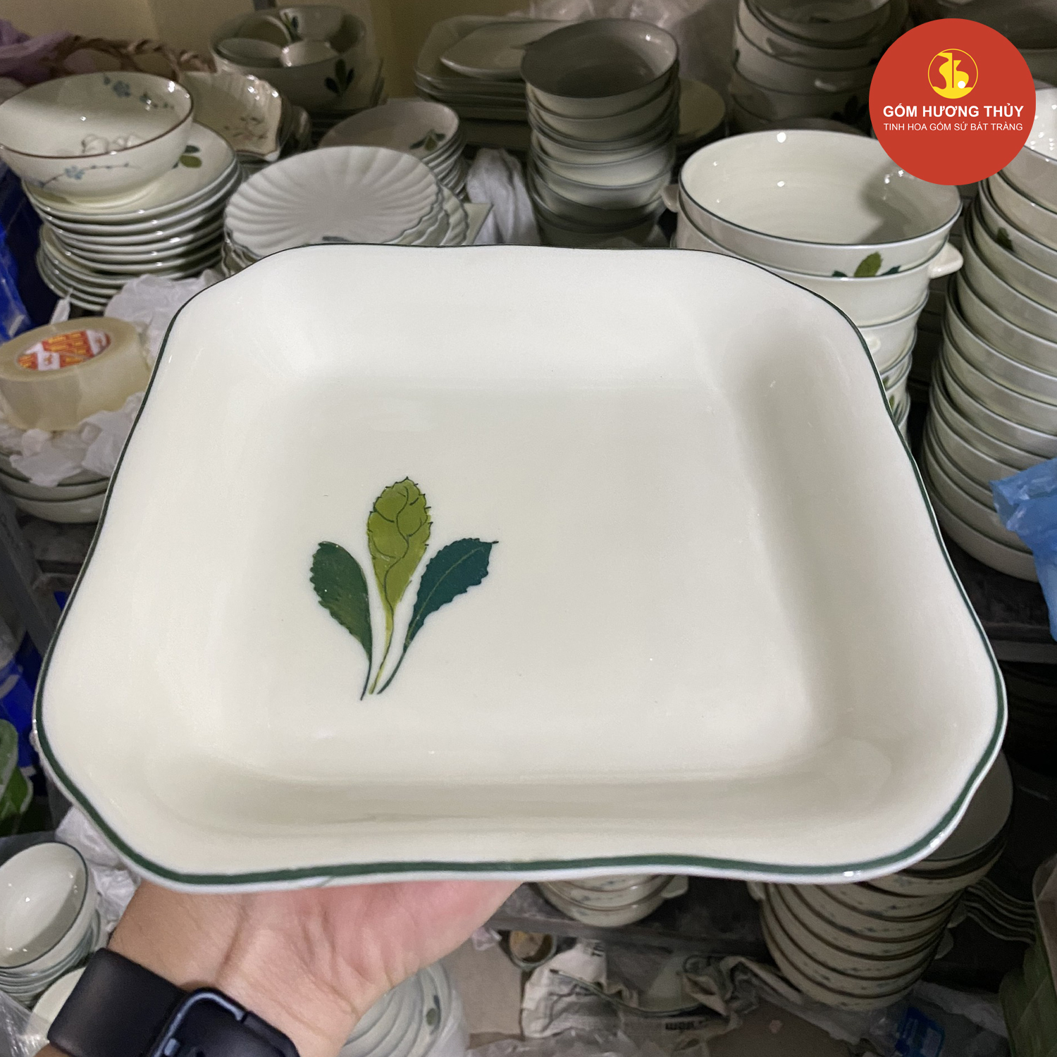 TÊN SẢN PHẨM: Khay vuông cao múi men kem vẽ ngò gai xanh