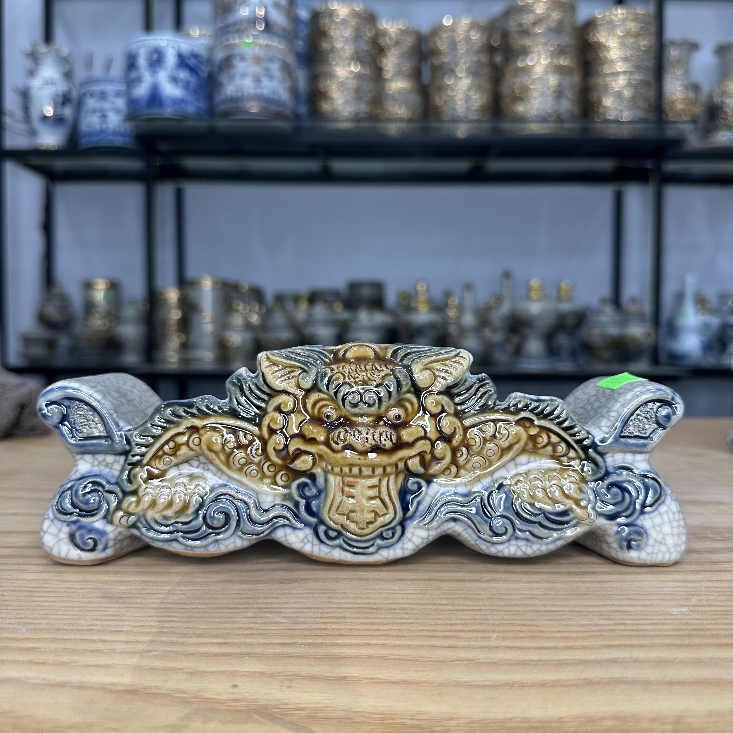 * Các hoa văn họa tiết như hình rồng, phượng, hoa, mây, sóng thủy ba,… được đắp nổi hoặc khắc chìm lên sản phẩm, các hoa văn này sẽ được sử dụng một loại men khác để vẽ lên, có thể là men ngọc, men nâu,… Sự kết hợp giữa các dòng men được người thợ Bát Tràng sử dụng nhuần nhuyễn và cho ra lò những sản phẩm đáp ứng nhu cầu cao của Khách hàng.