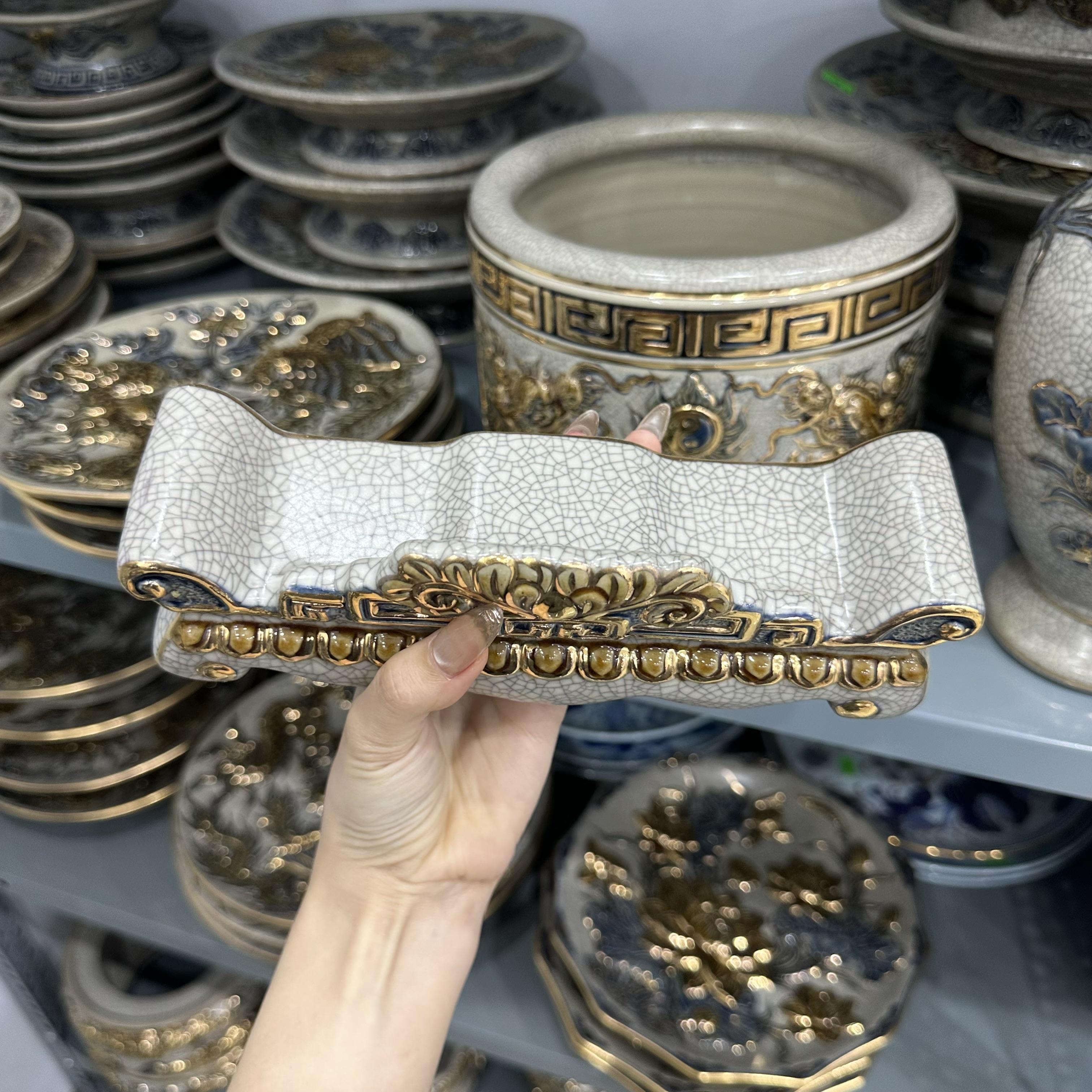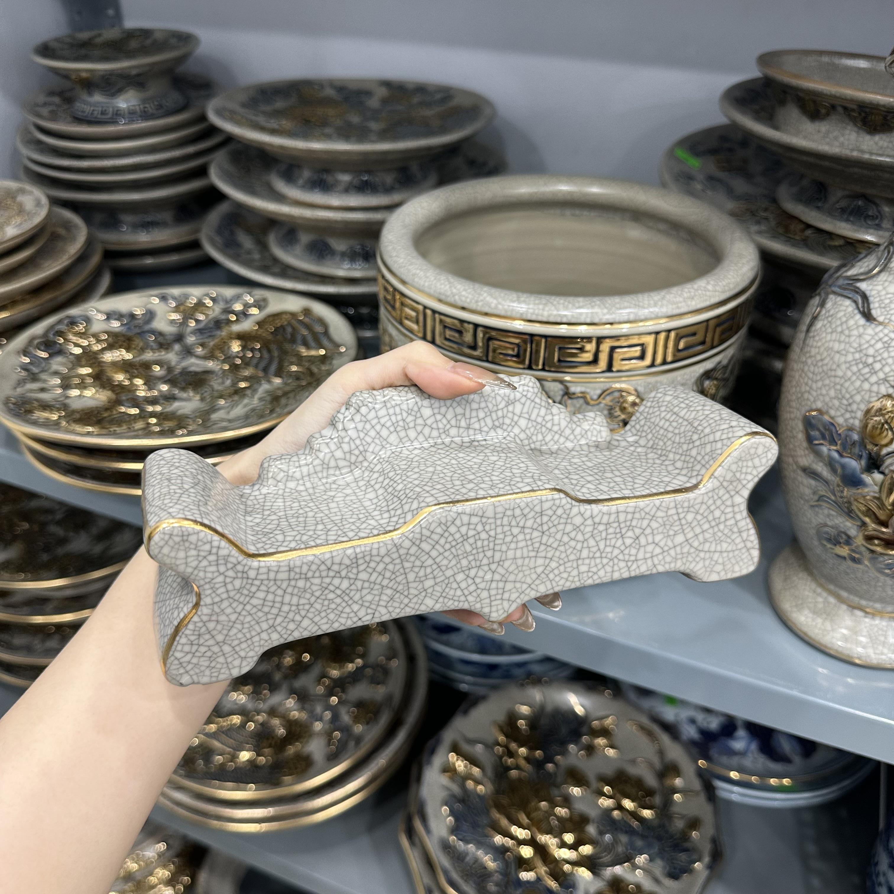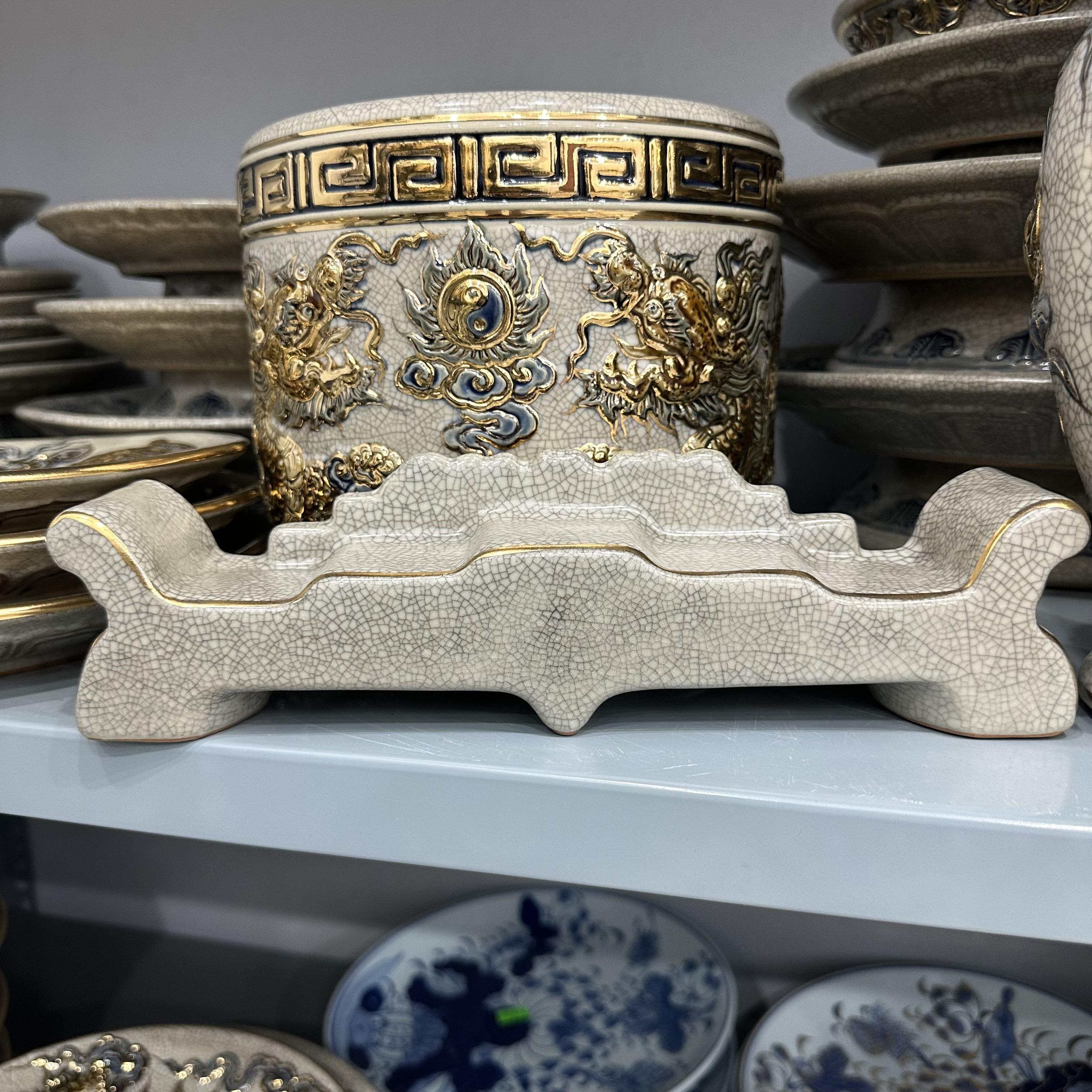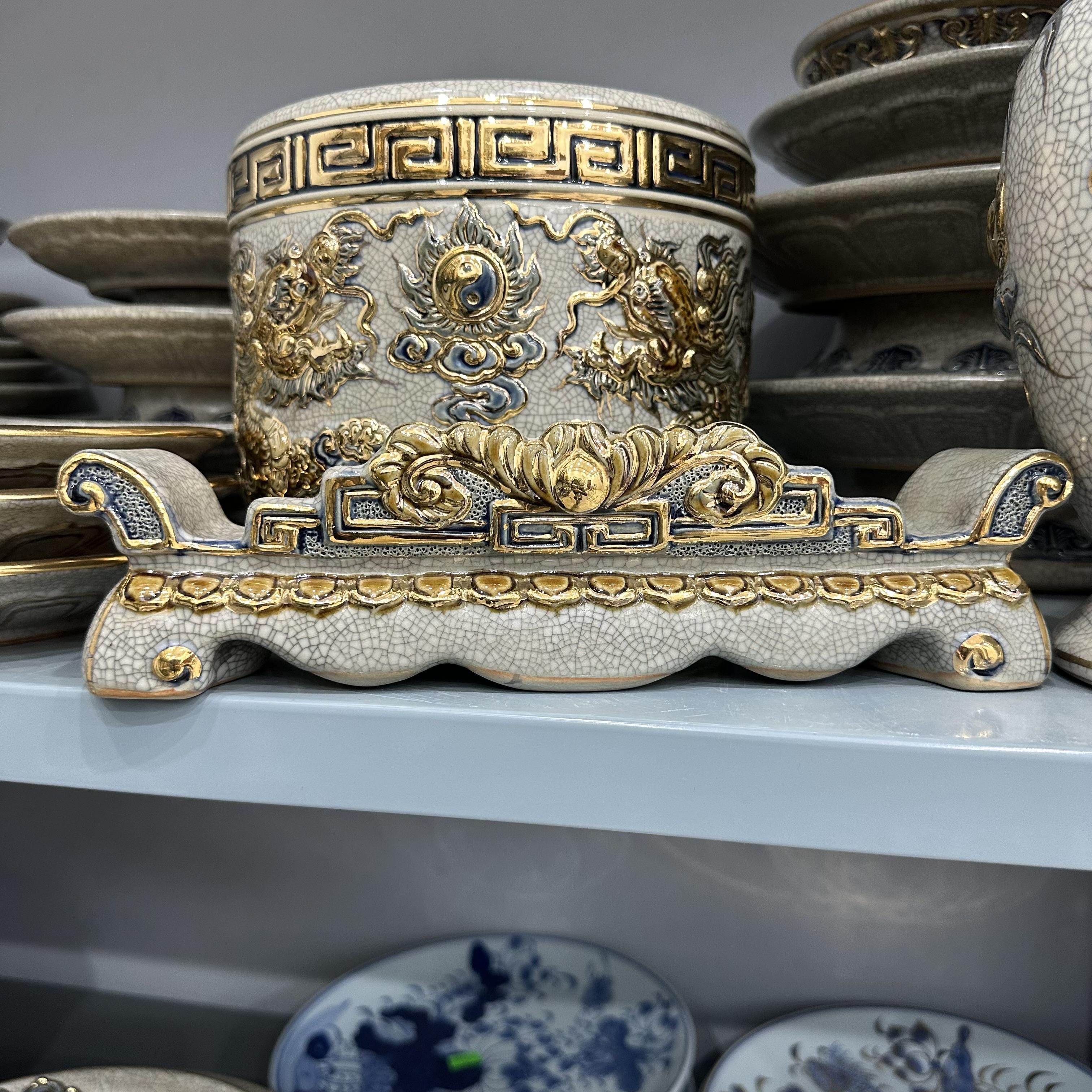 Kỷ ngai men rạn nổi Vẽ Vàng 24K [GỐM SỨ BÁT TRÀNG]