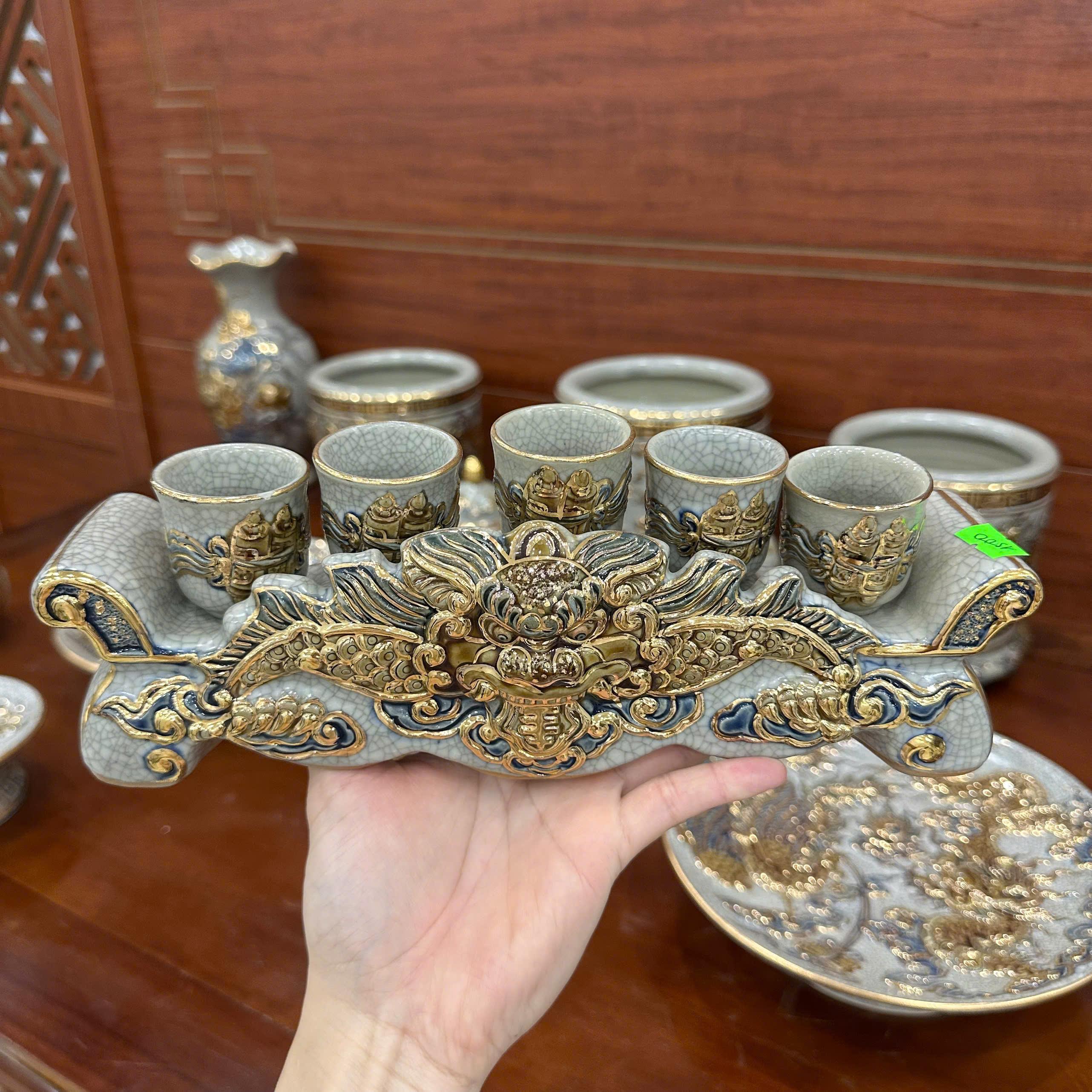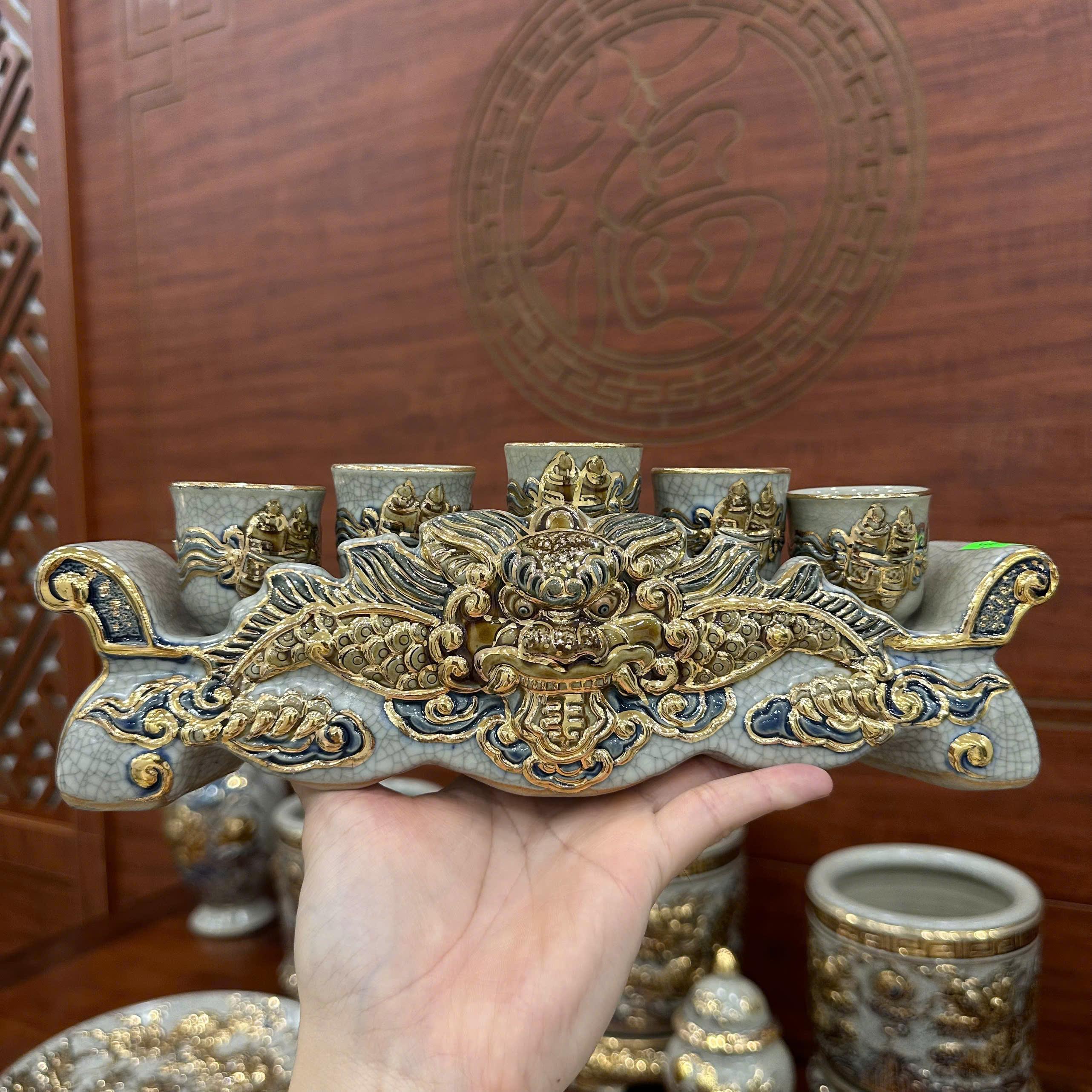 Chất liệu: Gốm sứ men rạn đắp nổi, vẽ vàng 24K.