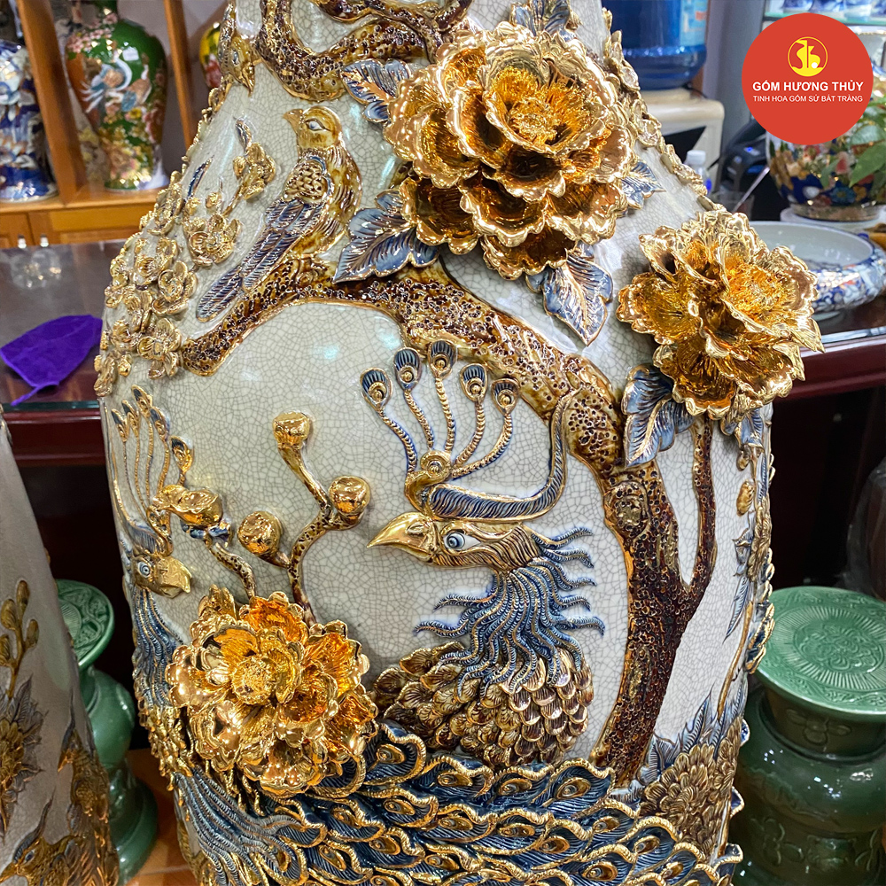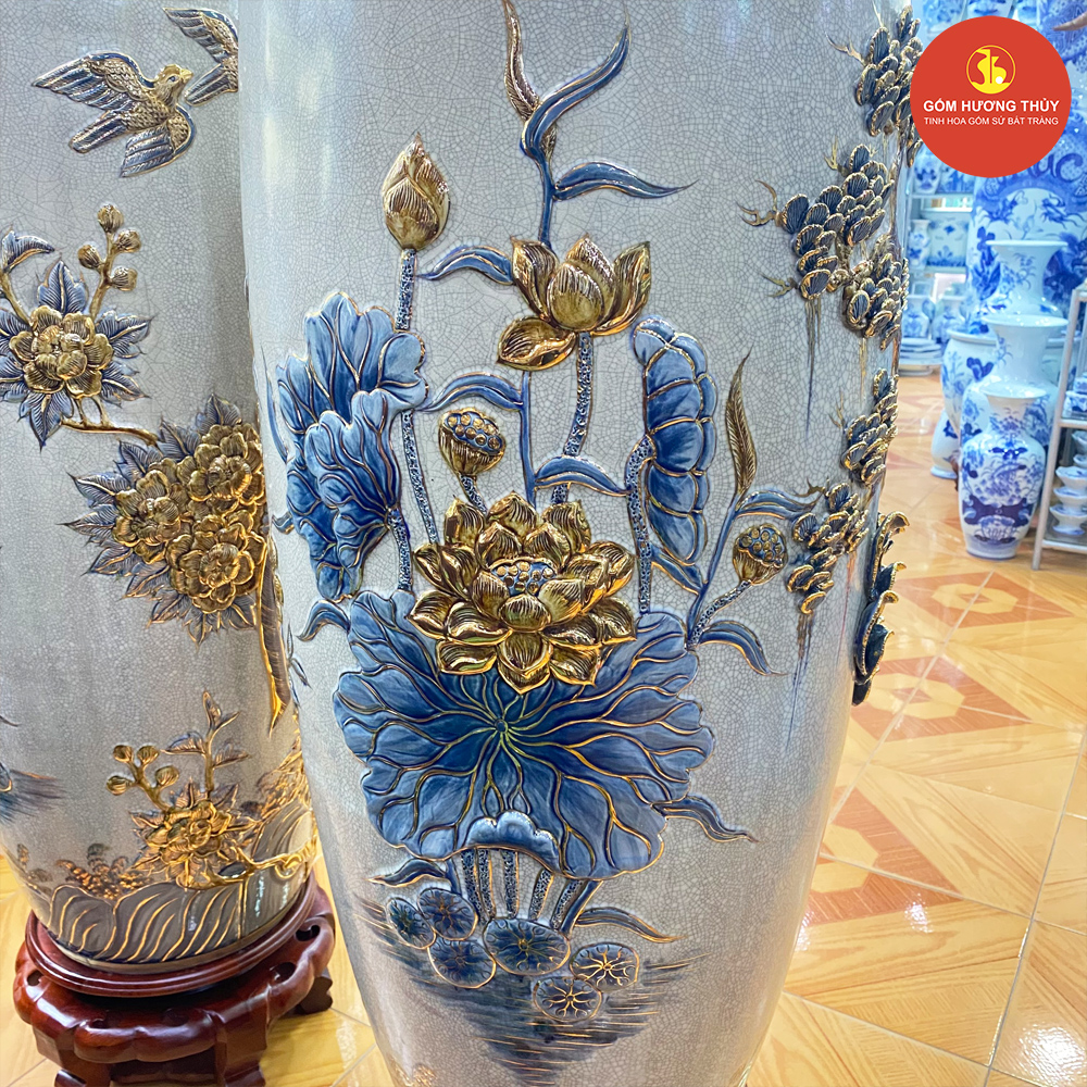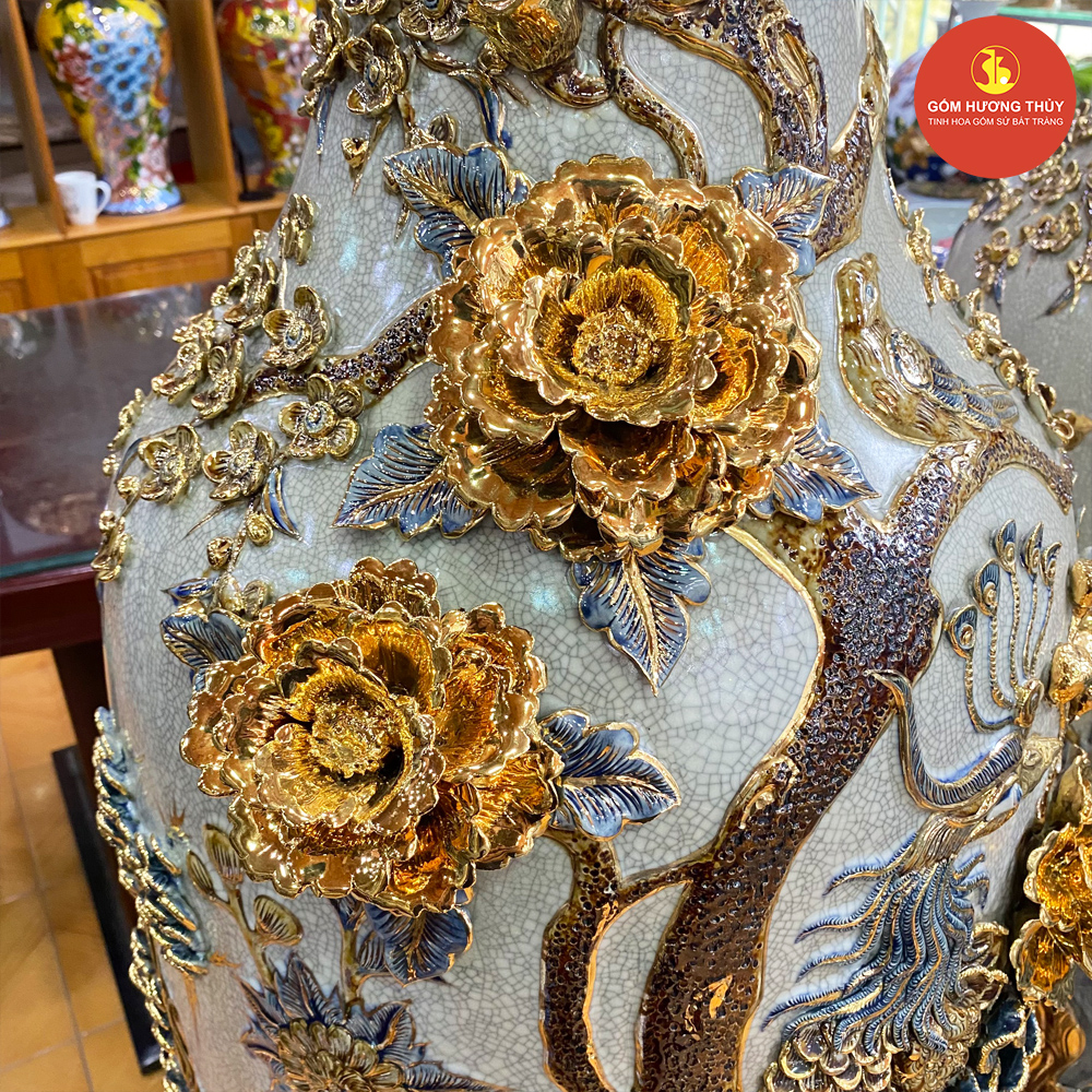 TÊN SẢN PHẨM: Lọ 1M4 Công kênh men rạn nổi Vẽ vàng kim