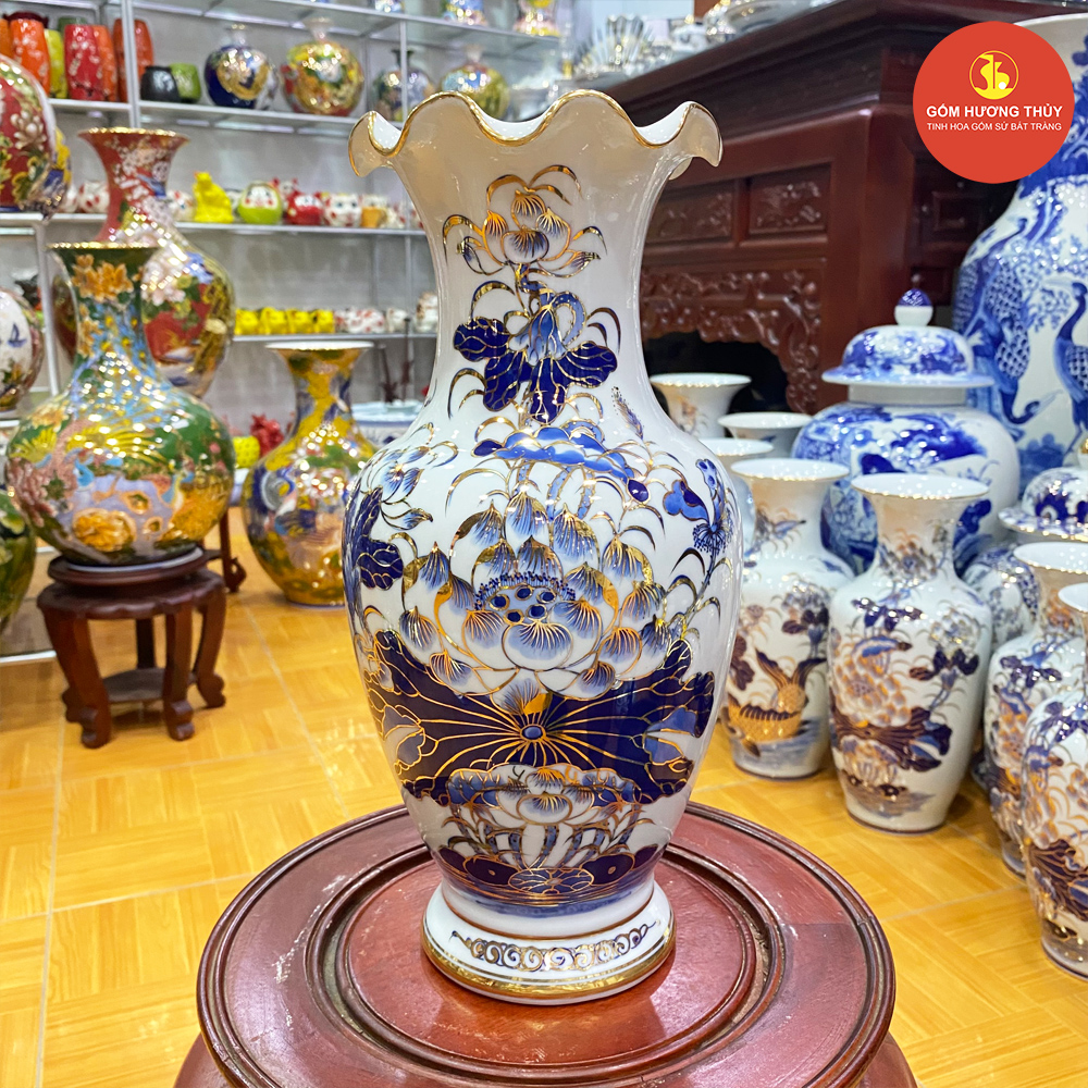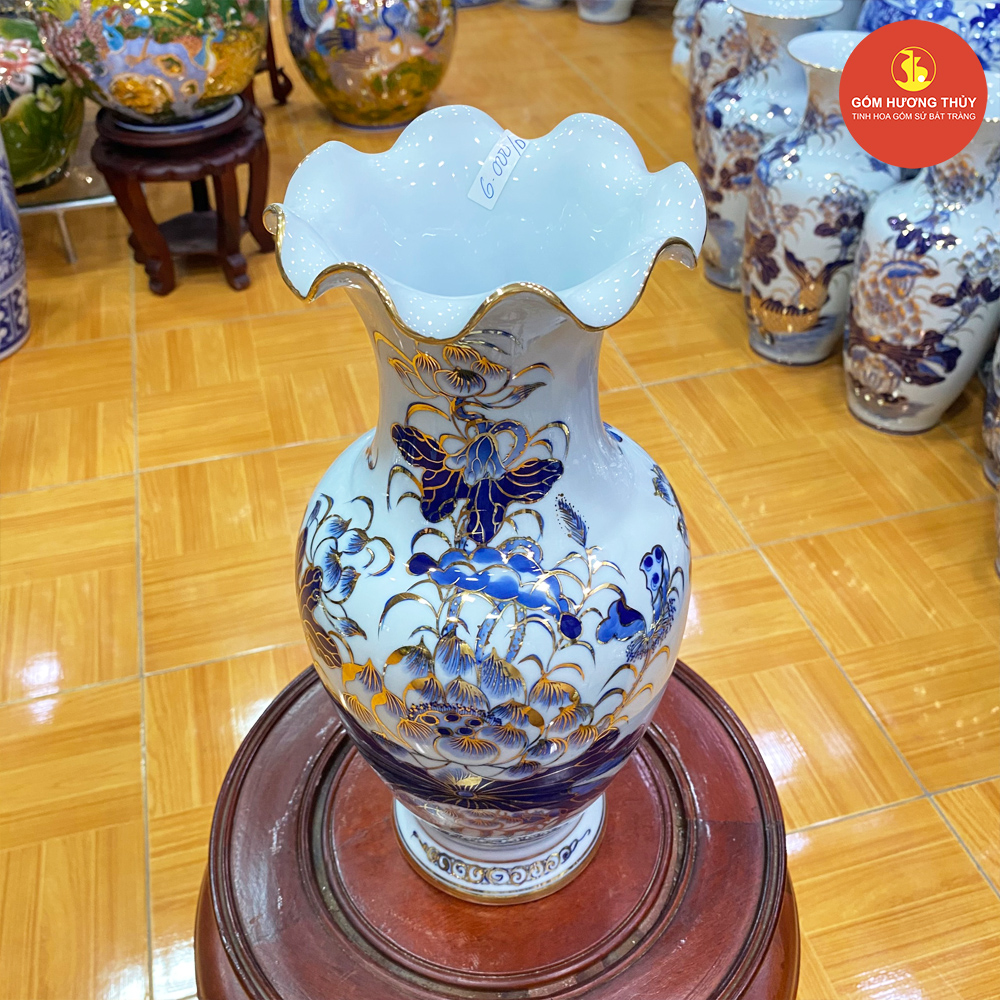 TÊN SẢN PHẨM: Lọ hoa miệng lượn S1 vẽ vàng kim