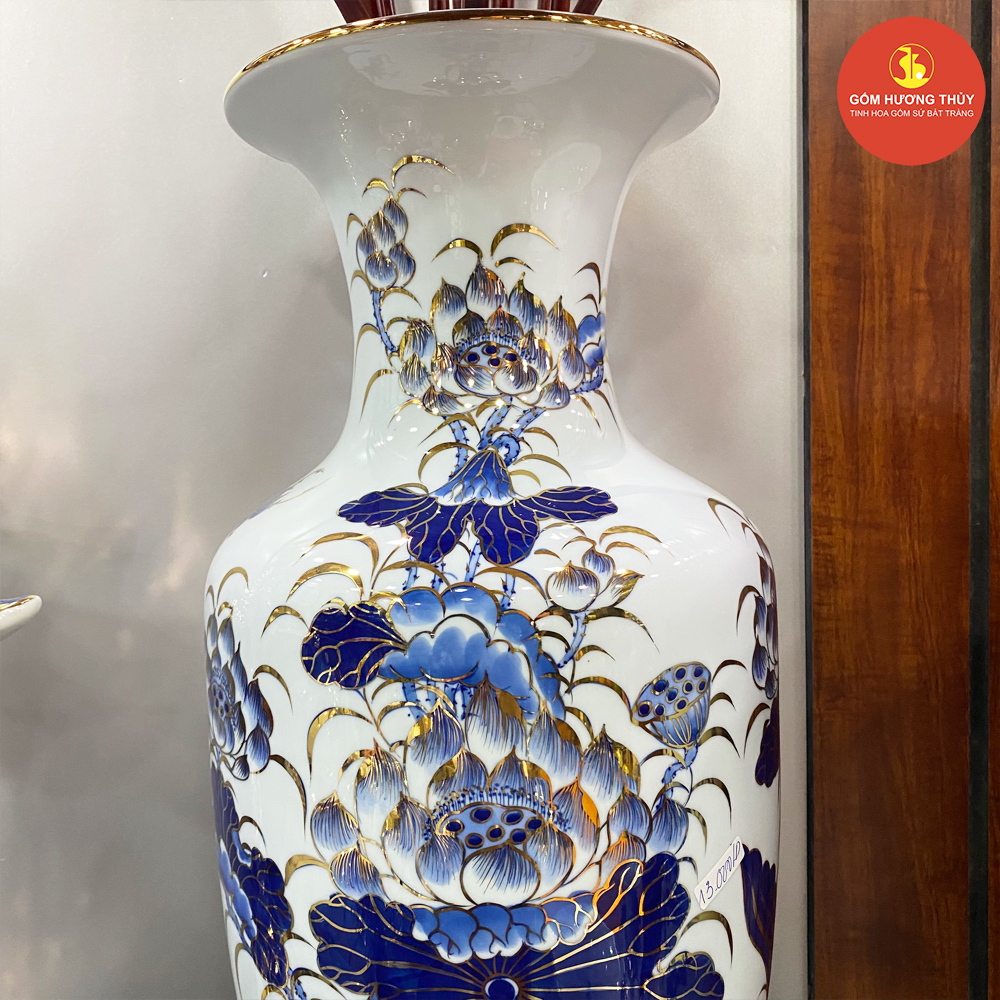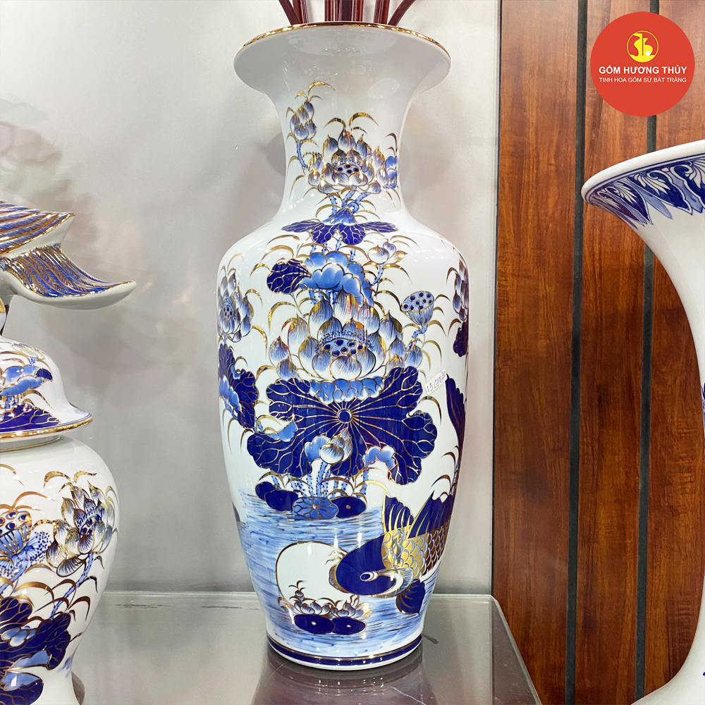 TÊN SẢN PHẨM: Lọ Lộc bình H60 Sen cá vẽ vàng kim