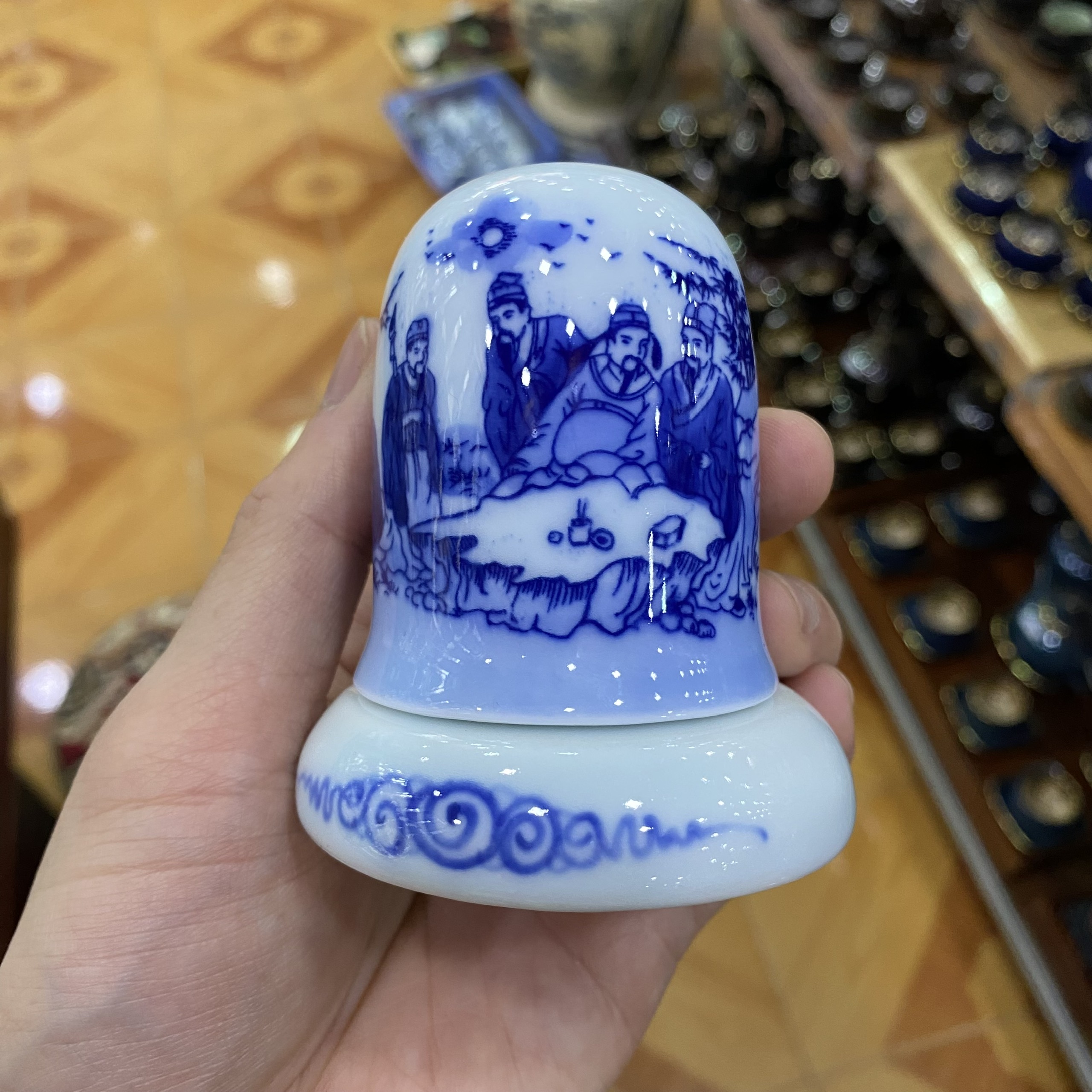 TÊN SẢN PHẨM: Lọ tăm men dong cổ vẽ Trúc Lâm Thất Hiền