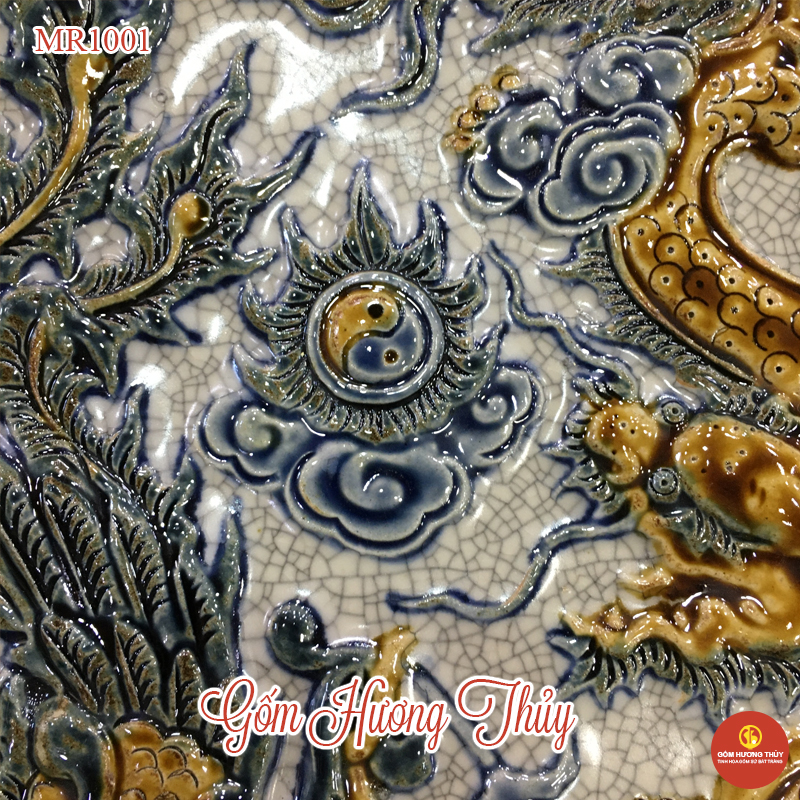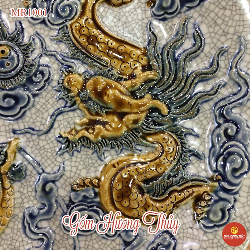 * Mâm bồng men rạn đắp nổi được trang trí hoa văn Long Phụng triều Nguyệt, mang ý nghĩa sâu đậm trong tôn giáo thờ cúng Việt