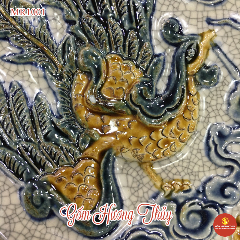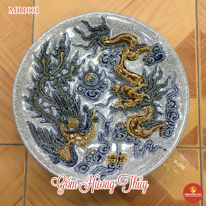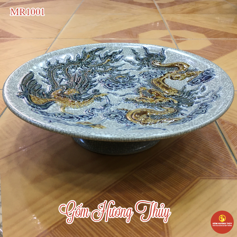 * Mâm bồng men rạn đắp nổi được trang trí hoa văn Long Phụng triều Nguyệt, mang ý nghĩa sâu đậm trong tôn giáo thờ cúng Việt
