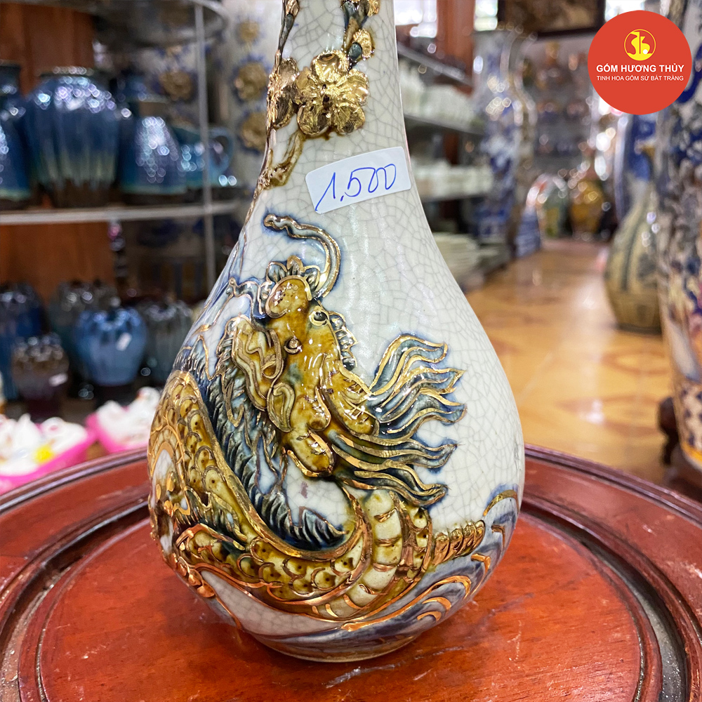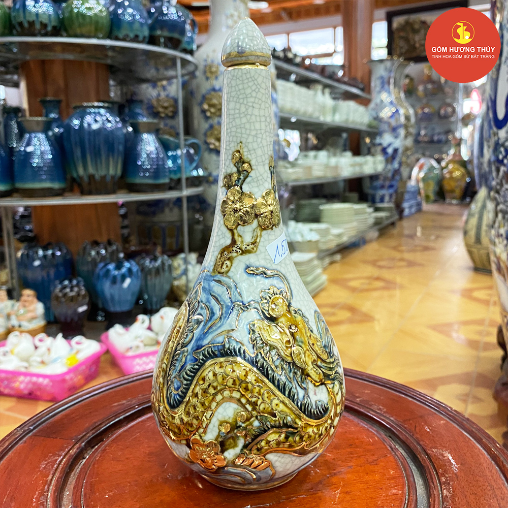 TÊN SẢN PHẨM: Nậm rồng S2 men rạn đắp nổi Vẽ Vàng kim