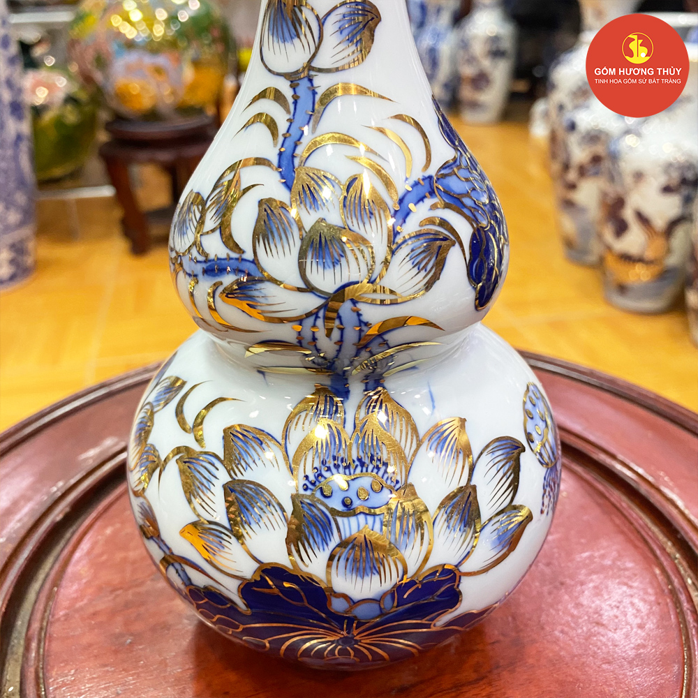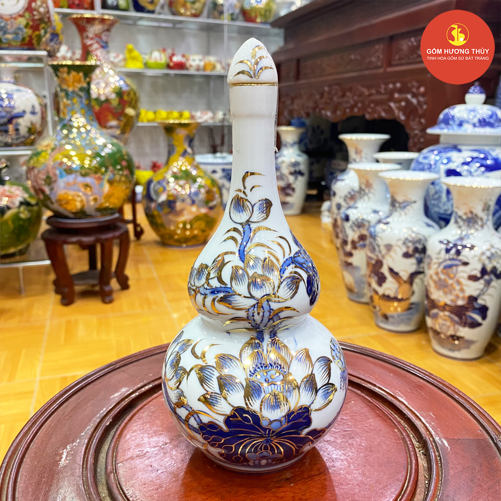 TÊN SẢN PHẨM: Nậm rượu 2 bầu S1 men dong vẽ vàng kim