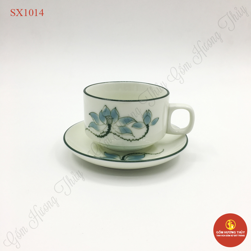 TÊN SẢN PHẨM: Tách trà men kem vẽ sen xanh