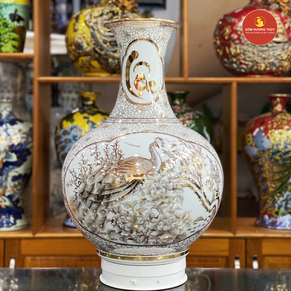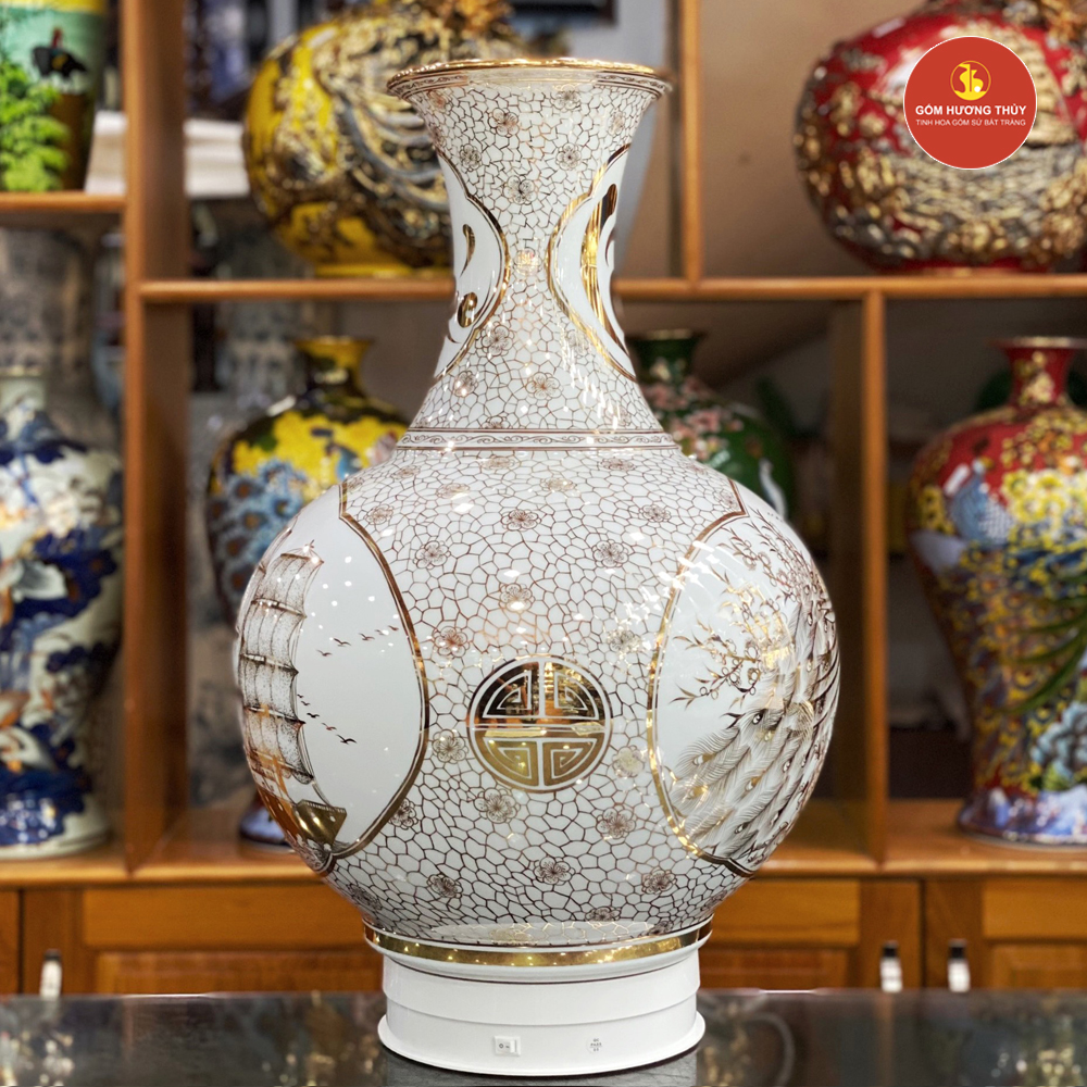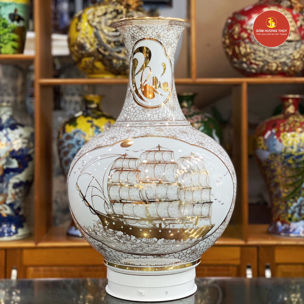TÊN SẢN PHẨM: Tỏi Tài Lộc H60 Nhị Cảnh thuyền Nền Trắng Vẽ Vàng 24K