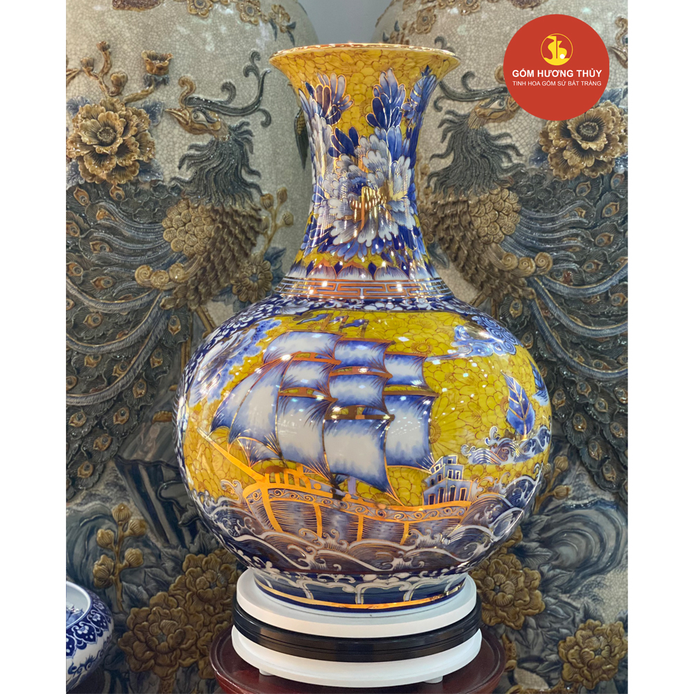TÊN SẢN PHẨM: Tỏi Tài Lộc Nhị Cảnh Thuyền Công Nền Vàng Vẽ Vàng 24K