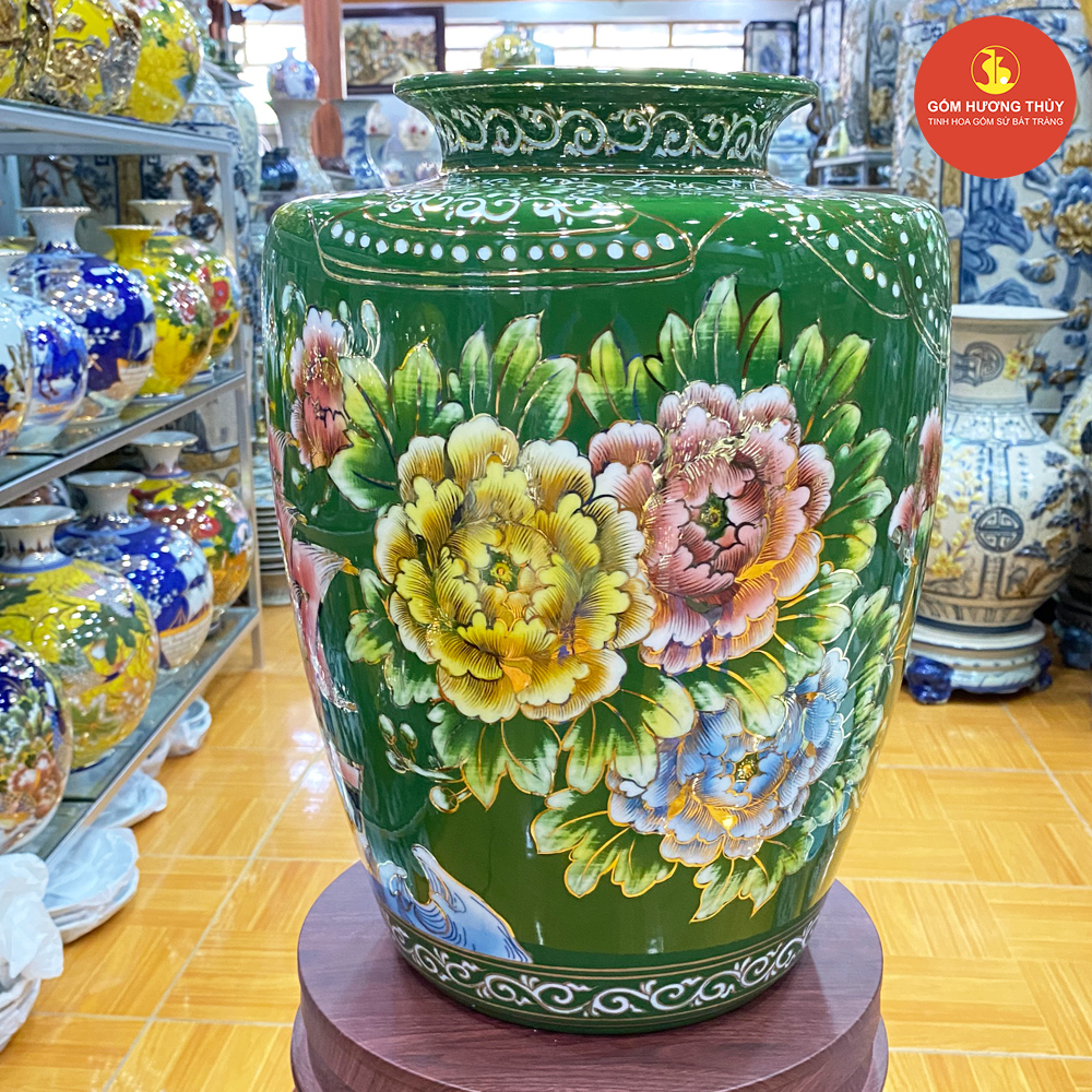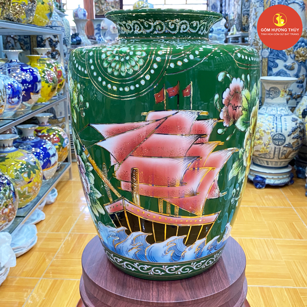 TÊN SẢN PHẨM: Vò H40 Thuận buồm nền xanh lá Vẽ vàng kim